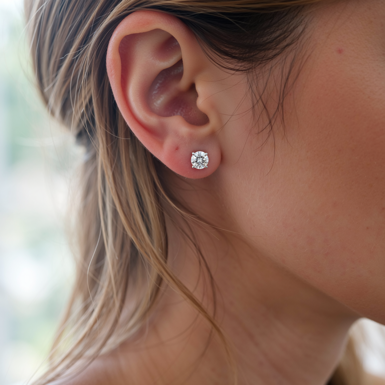 Experience the timeless beauty of diamond studs elevated to perfection. Our 2.00 CT Lab Diamond Stud Earrings (1.00 CT each) are crafted in a classic 4-prong basket setting of solid 18K white gold, combining exceptional brilliance with refined simplicity.