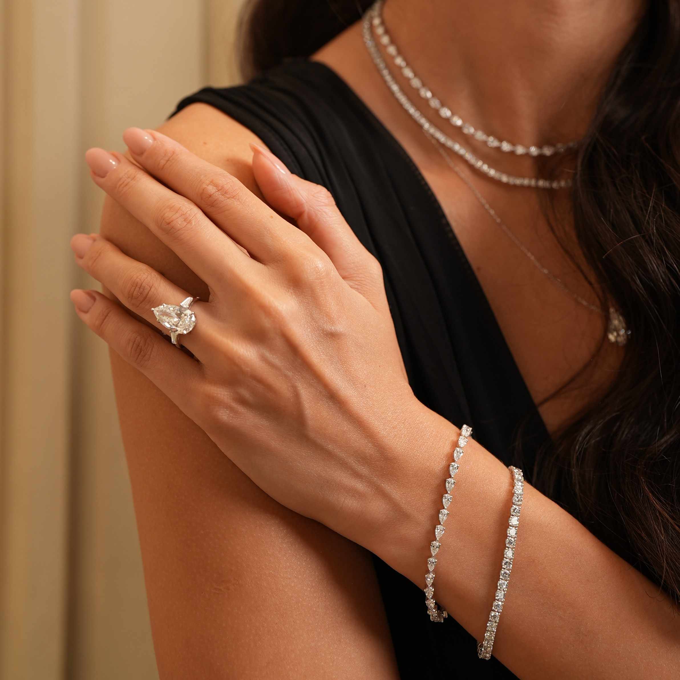 Adorn your wrist with the Pear Diamond Tennis Bracelet, a piece that defines elegance and timeless beauty. Shop now and discover the perfect balance of craftsmanship, luxury, and sustainability.