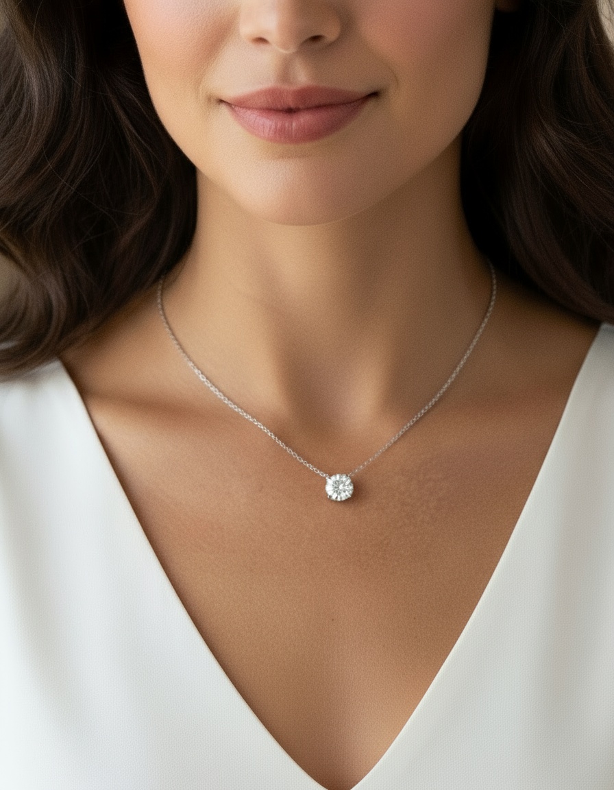 Elegant, timeless, and consciously crafted, the Certified 1.5CT Solitaire Necklace in 18K white gold captures the essence of refined simplicity. This exquisite piece features a brilliant 1.5-carat lab-grown diamond, IGI-certified and graded F color, VS1 clarity for its exceptional sparkle and purity.