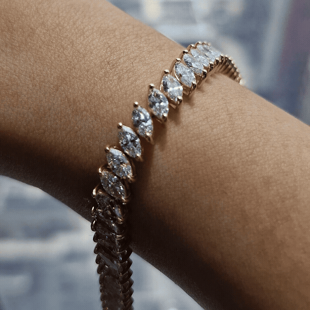 When it comes to timeless jewelry, the marquise cut stands out for its unique elegance. These diamonds, with their elongated shape and pointed ends, create an illusion of slender, graceful wrists. It’s a subtle detail that makes a big impact, especially if you’re looking for something sophisticated yet wearable. With 8 carats of dazzling diamonds, this bracelet strikes the perfect balance—bold enough for special occasions but versatile enough to elevate your everyday style. Plus, every diamond is IGI-certified, so you can wear this piece with confidence, knowing it’s crafted to the highest standards.