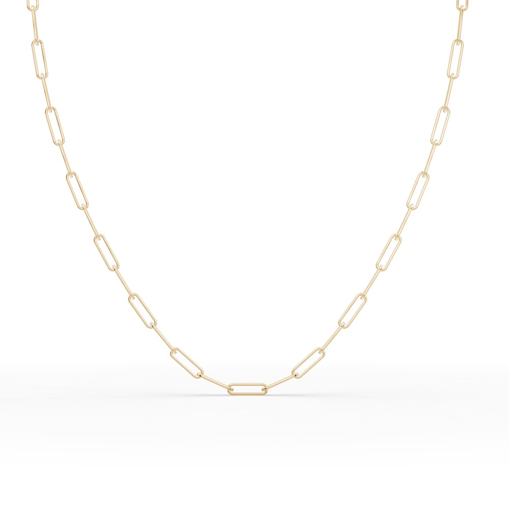 Versatile and enduring, the 18K gold classic paperclip chain is ideal for daily wear, adding a touch of understated luxury to any outfit—from casual looks to evening elegance.