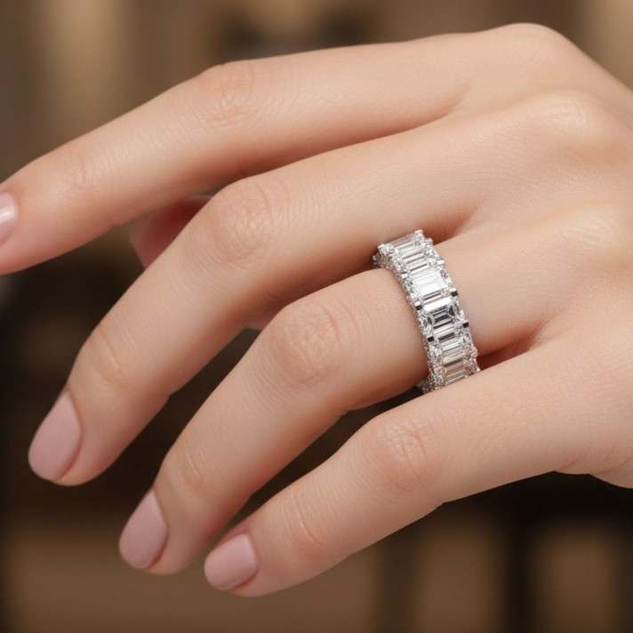 The 10 Carat Emerald Diamond Eternity Ring – Luxurious Wedding Band or Dominand Stacking Ring