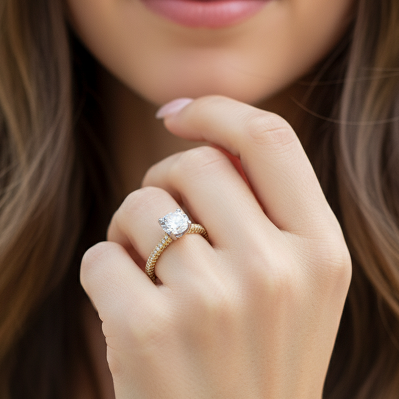 Round Diamond Engagement Ring with Micro Pave Band – A Classic Reimagined in Ethical Luxury