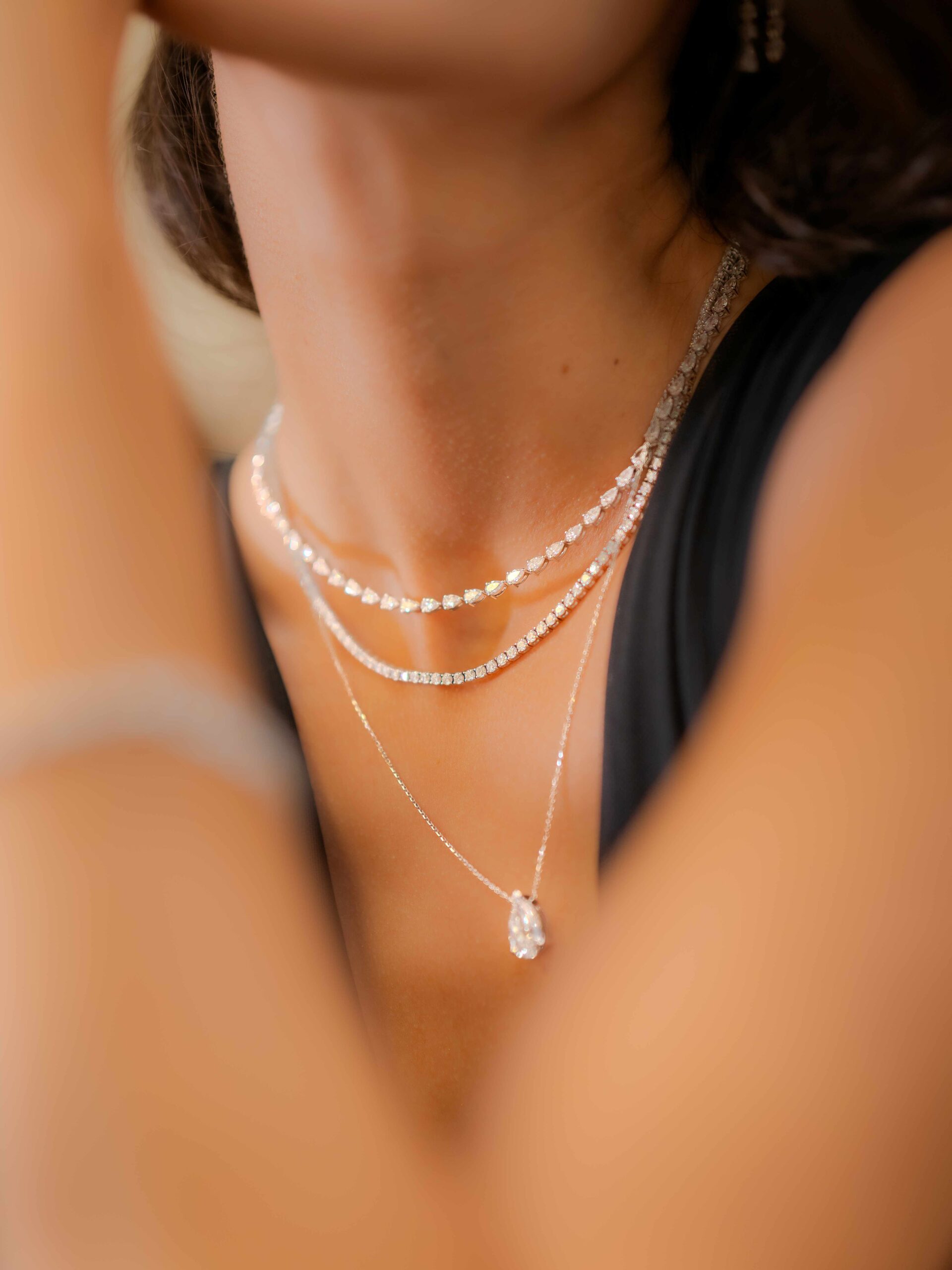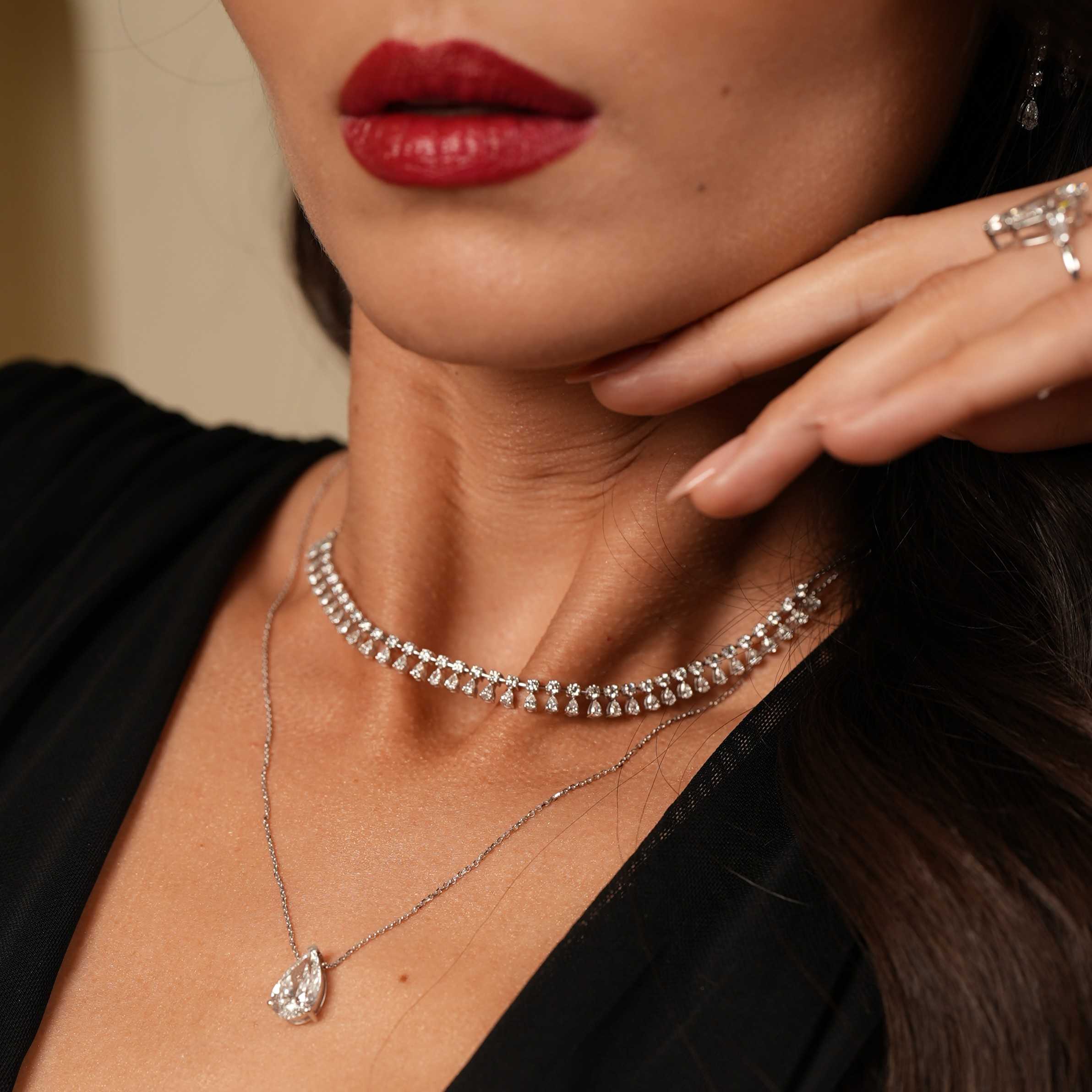 Celebrate life’s most brilliant moments with this breathtaking Pear Diamond & Gold Necklace. We designed this stunning piece as the ultimate symbol of timeless love and elegance, featuring a magnificent 5-carat pear-shaped diamond as its singular, radiant focus. Indeed, this necklace strikes the perfect balance between classic sophistication and modern, conscious luxury. It is, above all, a treasure designed to stand out and be cherished for a lifetime.