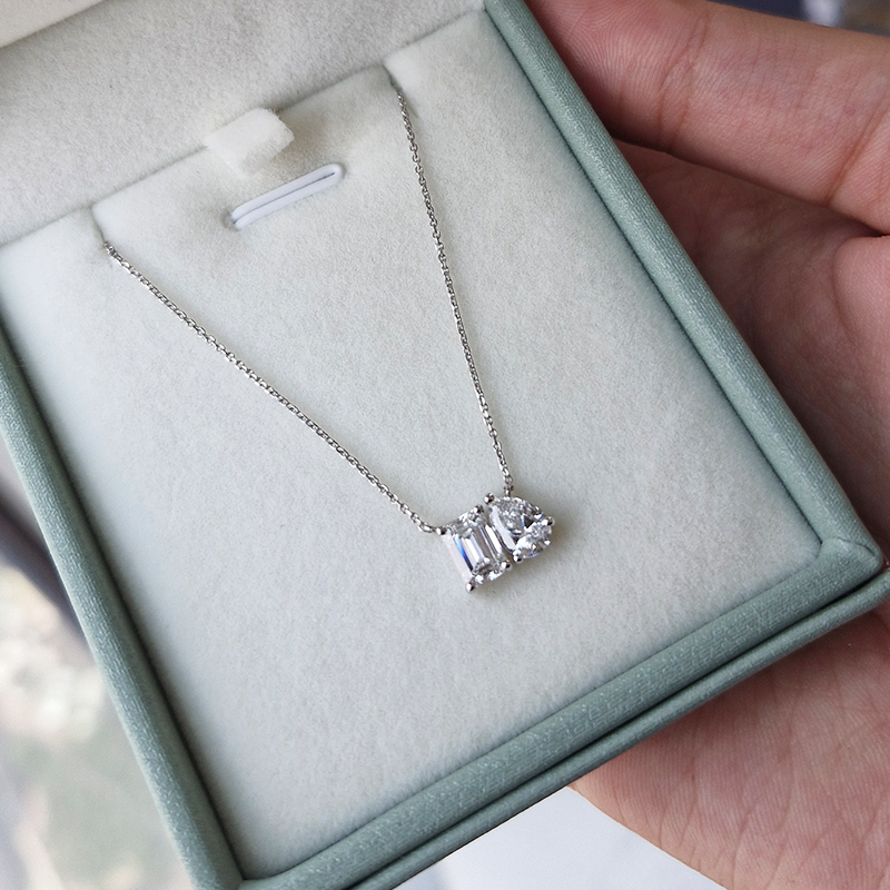 Celebrate love, unity, and modern elegance with our Toi et Moi Diamond Necklace. A stunning piece that tells a story. Featuring a captivating duo of pear-cut and emerald-cut lab-grown diamonds. This necklace embodies timeless sophistication with a contemporary twist. Inspired by the French phrase “You and Me,” the design symbolizes two souls connected in harmony.