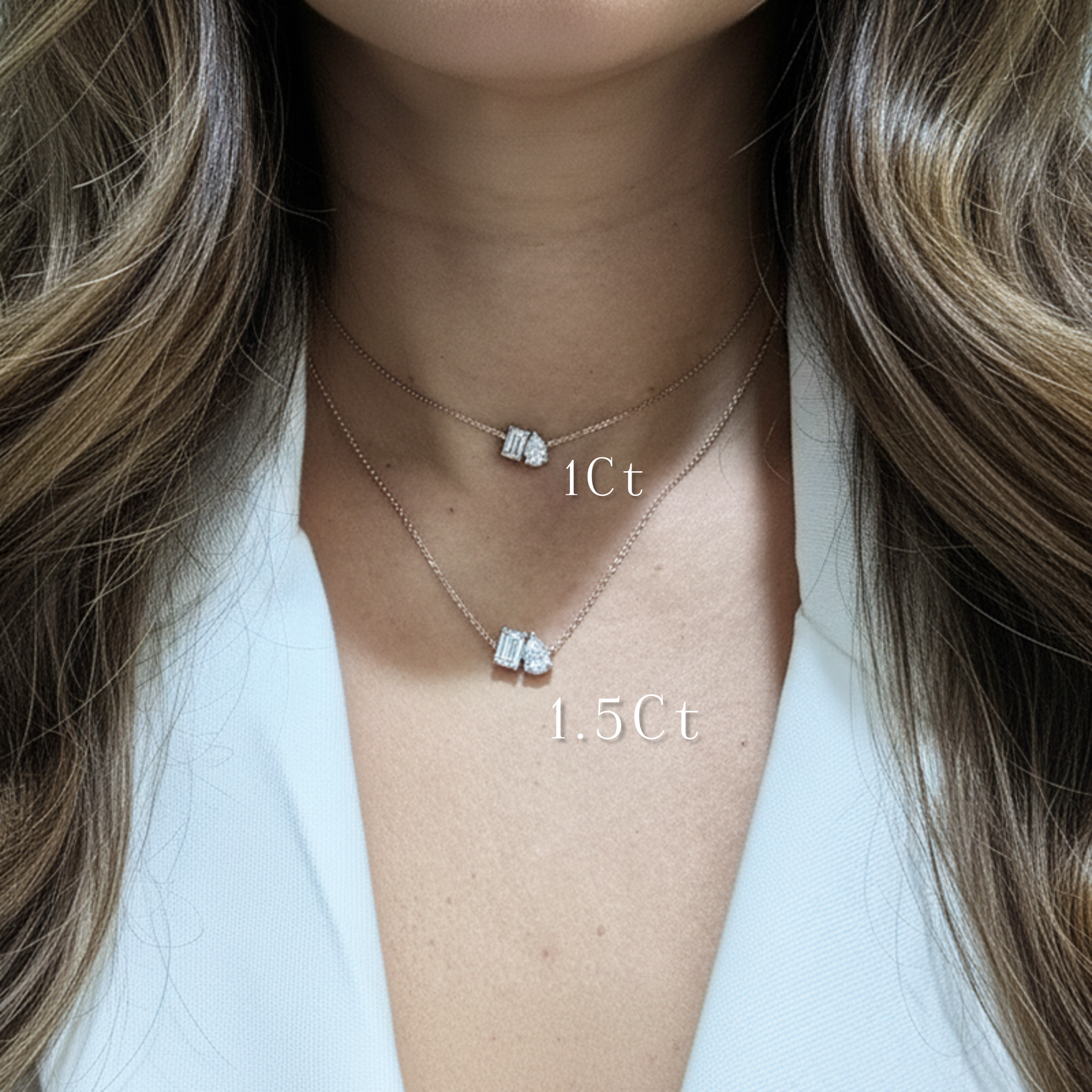 Toi et Moi Diamond Necklace – Pear & Emerald Cut Lab-Grown Diamonds in 18K Gold