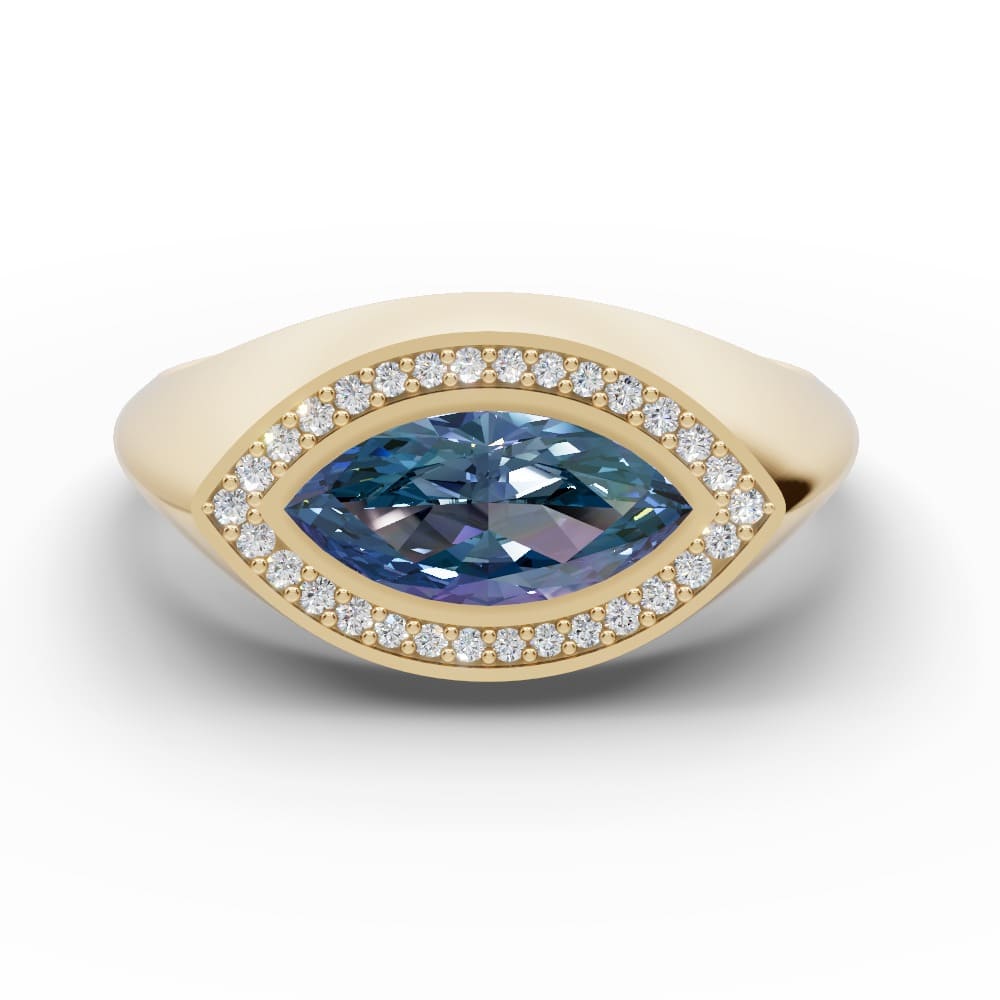 - Featuring a 0.50 CT vivid blue marquise-cut lab-grown diamond